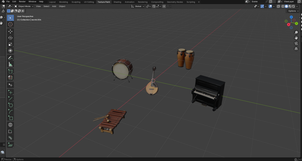 3D models consisting of Musical Instruments of various types - Piano - Xylophone - Drum - Conga Drums - Domra